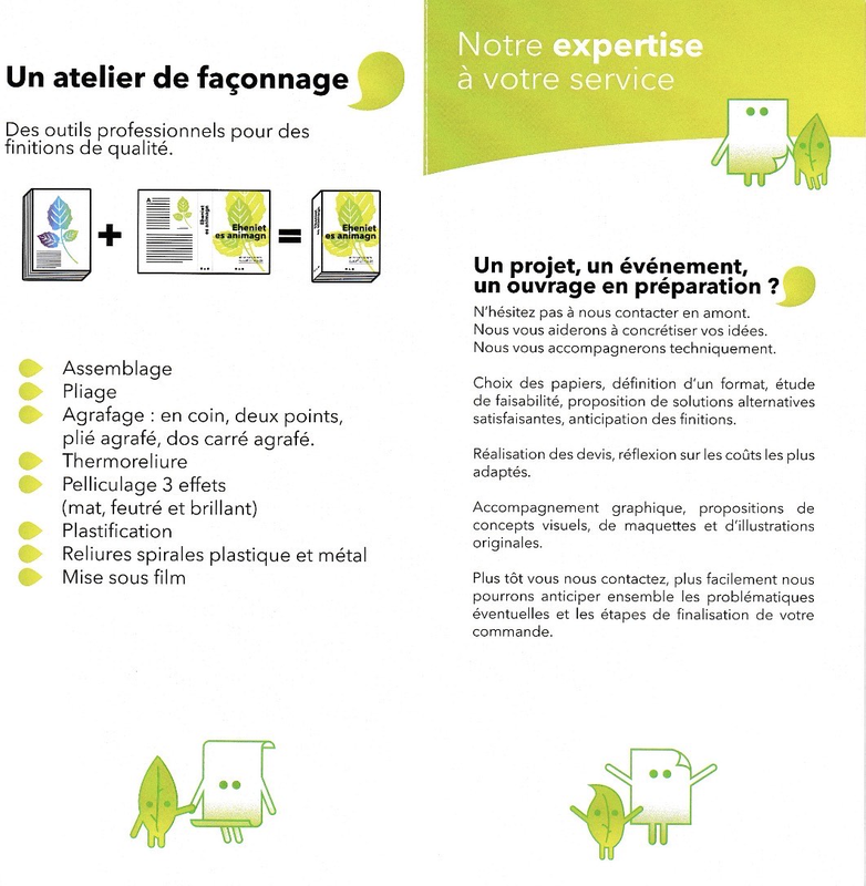 De la gestion à l'impression avec un atelier d'infographie et PAO, un atelier d'imprimerie numérique, un atelier de façonnage.