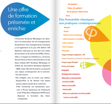 L’Université Bordeaux Montaigne (UBM) est un établissement d'enseignement supérieur situé à Pessac. L'université réunit plus de 17 000 étudiants, 1 300 enseignants et personnels administratifs autour des formations en arts, langues, lettres et sciences humaines et sociales. Elle comprend 3 UFR et 2 instituts (IUT Bordeaux Montaigne et IJBA), 1 école doctorale, 16 équipes de recherche et 1 Cité des Langues Etrangères, du Français et des Francophonies (CLEFF).